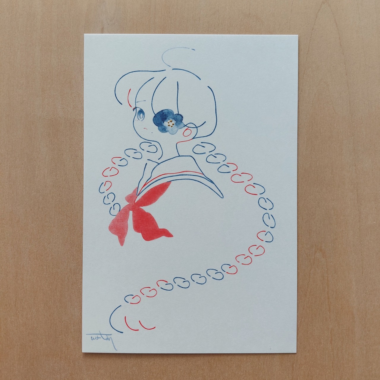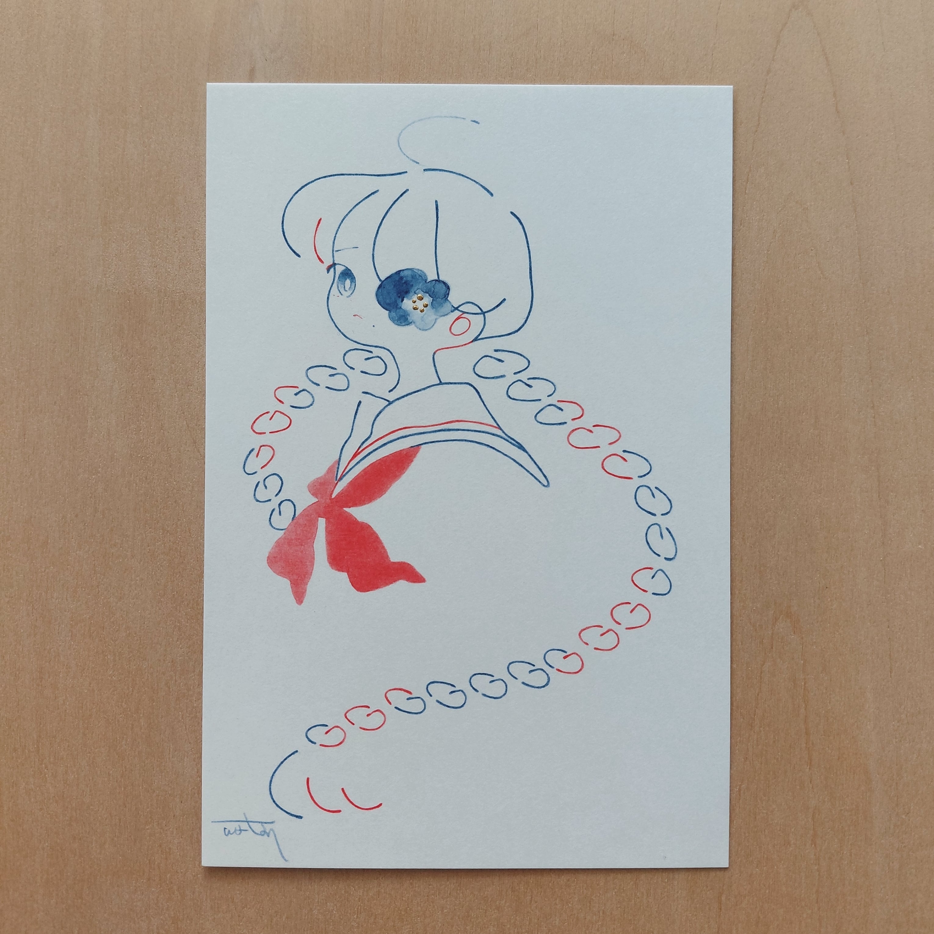 画材:赤青鉛筆/透明水彩他